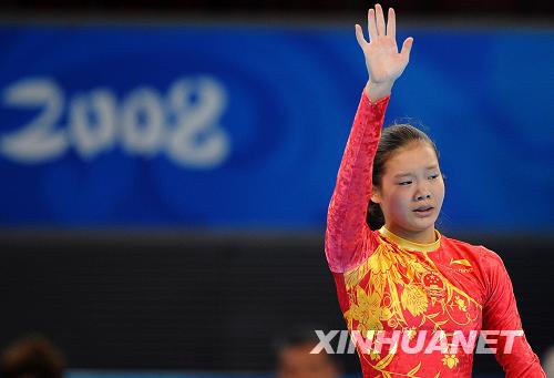 8月17日,程菲在自由體操比賽中出現(xiàn)失誤,賽后含淚向觀眾揮手致意。當(dāng)日,中國(guó)選手程菲在國(guó)家體育館進(jìn)行的北京奧運(yùn)會(huì)女子自由體操?zèng)Q賽中以14.550分的成績(jī)獲得第七名。新華社記者