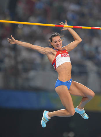 8月18日,俄羅斯選手伊辛巴耶娃在北京奧運(yùn)會(huì)女子撐桿跳高決賽中以5米05的成績(jī)奪得金牌并創(chuàng)造新的世界紀(jì)錄。