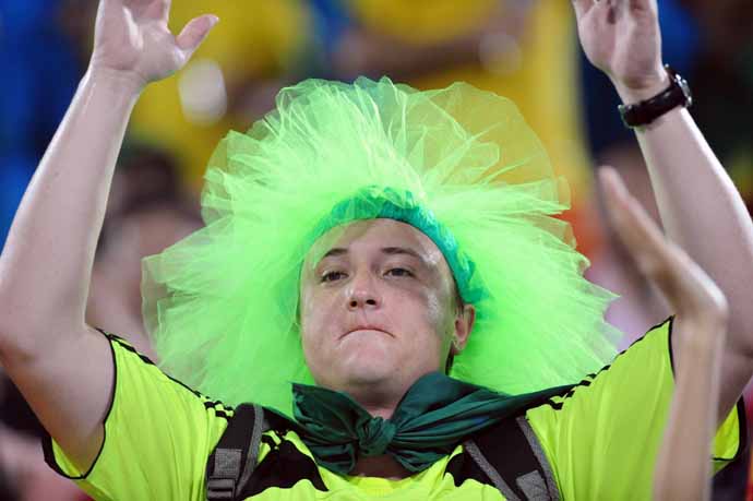 8月18日,巴西球迷。當日,北京奧運會沙灘排球1男子/4決賽結束。