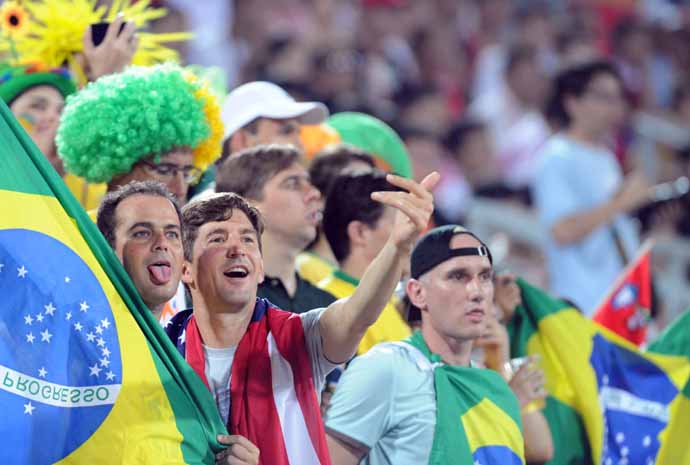 8月18日,巴西球迷。當(dāng)日,北京奧運會沙灘排球1男子/4決賽結(jié)束。