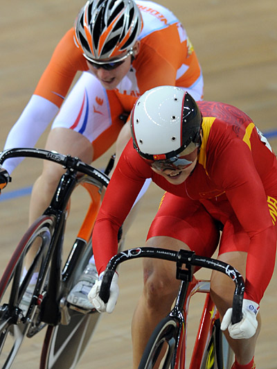 一團(tuán)紅色火球與一團(tuán)橙色火球,挾裹著全場(chǎng)觀眾陣陣驚雷般的吶喊聲,以電光火石之速,沖向終點(diǎn)線。50米,40米,30米,20米,10米,沖刺。郭爽贏了!不過(guò),她贏的是銅牌。 盡管被寄予很大希望的郭爽沖金未成,但剛賽完的她在繞場(chǎng)騎行時(shí),全場(chǎng)仍然一片歡呼,觀眾打出“郭爽真爽”的紅色橫幅為她慶祝勝利。 本來(lái)她應(yīng)該可以力爭(zhēng)金牌。在先前的半決賽上,郭爽在前兩輪與上屆奧運(yùn)會(huì)季軍安·米亞雷斯戰(zhàn)平。在關(guān)鍵的第三輪,這位內(nèi)蒙古姑娘又一次發(fā)威,以非常微弱的優(yōu)勢(shì)先于米亞雷斯沖過(guò)終點(diǎn)線。不幸的是,她因侵入對(duì)手車(chē)道犯規(guī)而被降級(jí)到季軍爭(zhēng)奪戰(zhàn)。 “奪得銅牌我感到非常高興和滿意,這證明我今后有更大的發(fā)展空間,”22歲的郭爽并沒(méi)有覺(jué)得銅牌代表遺憾。 但64歲高齡的法國(guó)教練丹·莫雷龍卻表示出非常遺憾:“盡管英國(guó)選手實(shí)力強(qiáng)勁,但郭爽完全可以沖擊金牌,銀牌對(duì)她猶如探囊取物,一枚銅牌實(shí)在太可惜了!痹鴰С鲞B續(xù)四次世錦賽冠軍、連續(xù)兩屆奧運(yùn)會(huì)冠軍費(fèi)·巴朗熱的莫雷龍?jiān)谕诵萸皼](méi)能把郭爽帶成奧運(yùn)會(huì)冠軍。 1986年2月26日,郭爽出生在郭靖曾經(jīng)彎弓射大雕的大草原。13歲那年,她雙腳踏上了自行車(chē)運(yùn)動(dòng)生涯。2002年,她被派往瑞士的世界自行車(chē)中心學(xué)習(xí),主攻女子爭(zhēng)先賽,師從馬涅教練,被馬涅教練贊為“聰明、天賦好、領(lǐng)悟力強(qiáng)、非常勤奮,是他最好的學(xué)生”。此時(shí),她在世界級(jí)舞臺(tái)上已經(jīng)嶄露頭角,脖子上已經(jīng)掛了好幾枚亮燦燦的金牌。據(jù)統(tǒng)計(jì),在2005年之前,小郭爽連續(xù)6次獲得世界自行車(chē)賽女子爭(zhēng)先賽青少年組冠軍。