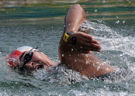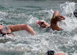 在20日上午進(jìn)行的北京奧運(yùn)會(huì)女子10公里馬拉松游泳比賽中,俄羅斯選手伊利琴科獲得冠軍,成為奧運(yùn)會(huì)歷史上首個(gè)馬拉松游泳冠軍。 伊利琴科奪冠的成績是1小時(shí)59分27秒7。 10公里馬拉松游泳比賽是首次進(jìn)入奧運(yùn)會(huì)正式項(xiàng)目,設(shè)男、女兩個(gè)小項(xiàng)。北京奧運(yùn)會(huì)的馬拉松游泳比賽在順義水上奧林匹克公園靜水水道進(jìn)行,25名選手需要游四個(gè)來回。因?yàn)闆]有賽道限制,選手必須學(xué)會(huì)在“混戰(zhàn)”中占據(jù)優(yōu)勢位置,并克服其他人的干擾。 伊利琴科在這個(gè)項(xiàng)目上具有超強(qiáng)實(shí)力。她雖然只有20歲,但是“野戰(zhàn)”經(jīng)驗(yàn)豐富、戰(zhàn)績輝煌,自2004年以來已經(jīng)8次取得5公里、10公里馬拉松游泳世錦賽冠軍,堪稱馬拉松游泳界的“女皇”。 | |