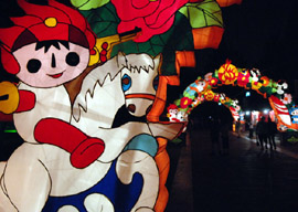 奧運(yùn)會期間,北京地壇公園的大型燈展活動吸引了不少游客。此次燈展既有“福娃”乖巧伶俐的運(yùn)動造型,也有“相約2008”和體育剪紙燈組,來自我國不同地區(qū)、具有民族特色的燈飾也在燈展上亮相。據(jù)介紹,整個活動將持續(xù)到8月22日。