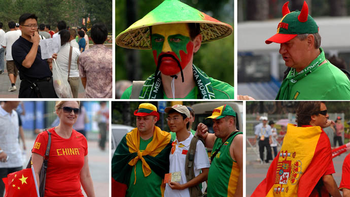 北京奧運(yùn)會(huì)籃球比賽進(jìn)行得如火如荼,而每次比賽時(shí)場(chǎng)內(nèi)外各國(guó)球迷的表現(xiàn)也成為另一道獨(dú)特的風(fēng)景。這組拼版照片分別是一名球迷在賽場(chǎng)外求購(gòu)門(mén)票(上左),兩名立陶宛球迷的奇異打扮(上中、上右),一名支持中國(guó)隊(duì)的外國(guó)球迷(下左),中外球迷合影(下中),一名西班牙球迷身披國(guó)旗(下右)(8月20日攝)。