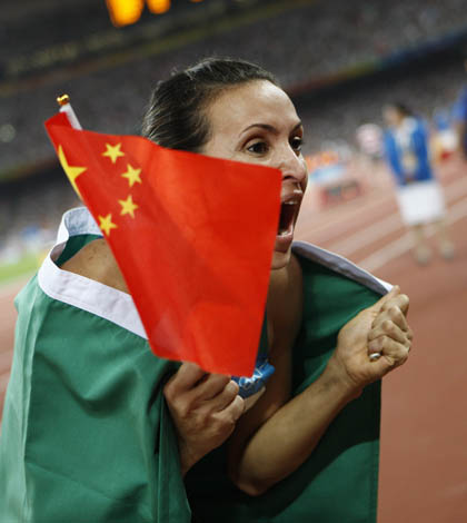8月22日,巴西選手毛倫·伊加·馬吉在比賽后慶祝。當(dāng)日,馬吉在北京奧運(yùn)會女子跳遠(yuǎn)決賽中以7米04的成績奪得金牌。