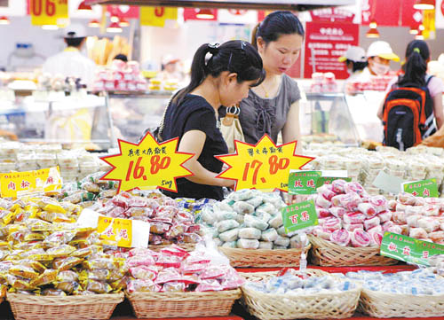 8月25日,顧客在上海一家超市內(nèi)選購散裝月餅。中秋節(jié)漸近,上海各超市賣場內(nèi)的“月餅大戰(zhàn)”提前展開。擺上專柜的月餅多為散裝或簡裝產(chǎn)品,由于包裝簡化,價廉物美,口味豐富,更受消費者歡迎。