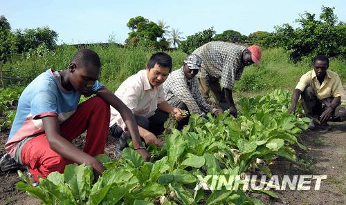 9月6日,在塞內(nèi)加爾首都達(dá)喀爾遠(yuǎn)郊的中國(guó)蔬菜種植示范園,農(nóng)藝專家楊廷明(左)指導(dǎo)當(dāng)?shù)剞r(nóng)民蔬菜種植技術(shù)。從2005年開始,十多名來自中國(guó)的農(nóng)業(yè)技術(shù)專家在西非之角的達(dá)喀爾遠(yuǎn)郊設(shè)立一片占地1.3公頃的中國(guó)蔬菜種植示范園。經(jīng)過2年多耕耘,示范園已經(jīng)成功培育蔬菜30余種,培訓(xùn)當(dāng)?shù)剞r(nóng)業(yè)技術(shù)人員3190余人。 |