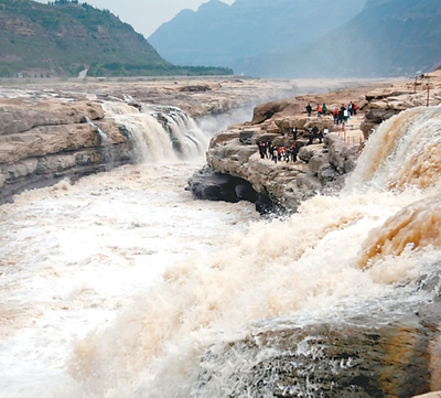 11月19日,黃河壺口迎來冬汛,壺口瀑布氣勢磅礴,景象壯觀。雖已進入11月旅游淡季,觀賞瀑布的游客卻絡繹不絕。圖為游客在黃河壺口瀑布景區(qū)游覽。