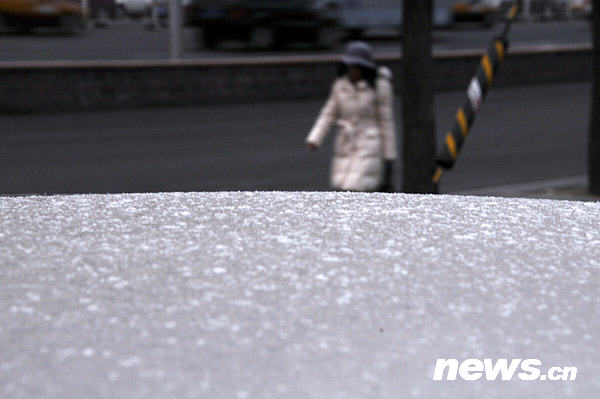 12月10日,一位行人從車頂積雪的汽車旁走過。 由于受高空西來槽與低層偏東氣流的共同影響,10日白天北京地區(qū)陰有小雪轉(zhuǎn)多云。昨晚8點(diǎn)到今天早上6點(diǎn),北京市郊已經(jīng)出現(xiàn)降雪;主要市區(qū)的降雪從6點(diǎn)開始零星落下,但雪量偏小。入冬以來,北京周邊地區(qū)一直干燥少雨雪,水汽含量低,即使經(jīng)歷了前幾日的強(qiáng)冷空氣襲擊,卻因?yàn)闆]有適時(shí)的暖濕氣流來配合,造成“無水可下”的局面。