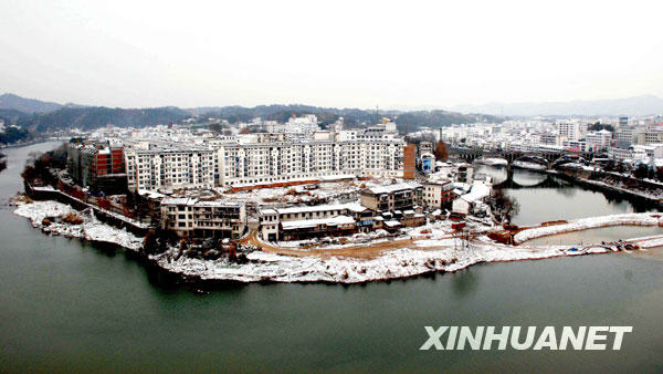12月22日,入冬以來(lái)的第一場(chǎng)雪把江西婺源縣城裝扮得銀裝素裹。當(dāng)日,受較強(qiáng)冷空氣影響,江西婺源出現(xiàn)降雪和大風(fēng)降溫天氣。