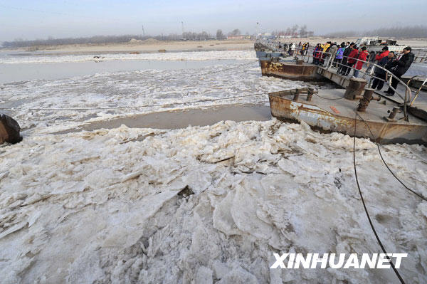 12月23日,市民在黃河濟(jì)南濼口段觀賞流凌。受較強(qiáng)冷空氣影響,自12月22日凌晨,黃河濟(jì)南段出現(xiàn)今冬首次淌凌現(xiàn)象,較去年冬天首次淌凌提前了23天。目前,濟(jì)南黃河河務(wù)局已全面恢復(fù)24小時(shí)防凌值班制度,密切關(guān)注凌情變化。