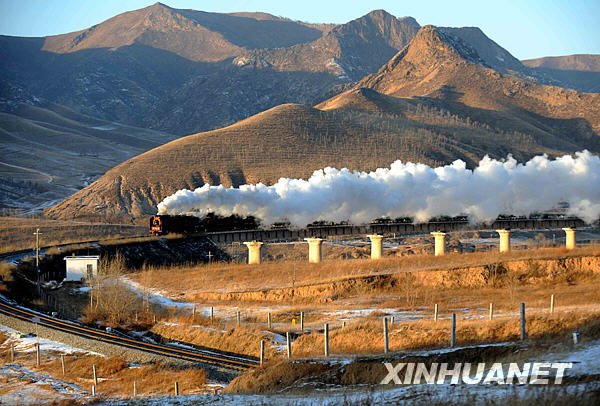 12月27日,“集通號(hào)”草原旅游蒸汽火車駛過內(nèi)蒙古克什克騰旗經(jīng)棚—嘎拉德斯太段的司明義特大橋。當(dāng)日,由內(nèi)蒙古集通鐵路集團(tuán)與克什克騰旗共同舉辦的第二屆蒸汽機(jī)車旅游節(jié)在經(jīng)棚火車站拉開帷幕。在為期7天的旅游節(jié)上,主辦方將為來(lái)自國(guó)內(nèi)外的萬(wàn)余名旅游者、攝影師舉辦蒸汽機(jī)拍攝、乘坐“紅色專列”及鐵路沿線采風(fēng)活動(dòng)。