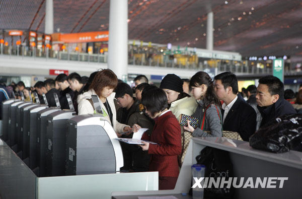 1月20日,旅客在北京首都國際機場排隊辦理乘機手續(xù)。當日是農歷臘月二十五,大批旅客踏上回家過年的旅程,春運客流高峰到來。