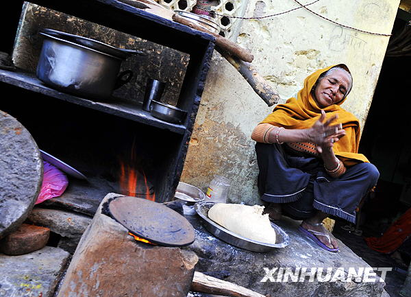 | 2月19日,在位于印度新德里南部的一處貧民窟內(nèi),一名婦女在做飯。 |