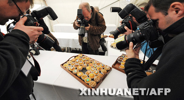 3月14日,在英國首都倫敦以南約50公里的霍舍姆的新聞中心,各國攝影記者的鏡頭聚焦在貼有二十國集團(tuán)成員旗幟的小點(diǎn)心上。新華社/法新 | |