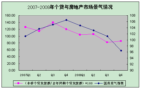 2008年,全國共發(fā)放住房公積金個人貸款131.13萬筆、2035.93億元,占當(dāng)年繳存額的45.55%。截至2008年末,累計為961.17萬戶職工家庭發(fā)放個人住房貸款10601.83億元,同比增長23.77%,個人貸款余額為6094.16億元,新增余額1019.83億元,增幅為20.10%,個人貸款余額與商業(yè)性個人住房貸款余額比例由2007年末的18.77%上升為2008年末的20.43%。 住房公積金個人貸款與房地產(chǎn)市場景氣情況密切相關(guān),2007年四季度以來,由于房地產(chǎn)市場表現(xiàn)低迷,個人貸款發(fā)放呈下降趨勢,2008年三、四季度個貸發(fā)放額同比分別減少18.34%、14.95%,全年同比減少165.64億元,降幅為7.52%。2008年末,全國個貸率(個人貸款余額/繳存余額)為50.30%,同比減少2.53個百分點。