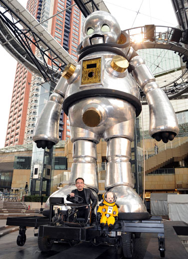 3月27日,日本著名美術(shù)家矢延憲司制作的高7.2米的巨型機(jī)器人“巨人Torayan”出現(xiàn)在東京街頭,他不僅能載歌載舞,還能從嘴部噴射出巨大的火焰,令人們大為吃驚。