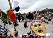 8月20日,拉薩市的小學(xué)生在布達(dá)拉宮廣場表演藏戲。新華社記者 格桑達(dá)瓦 攝 |