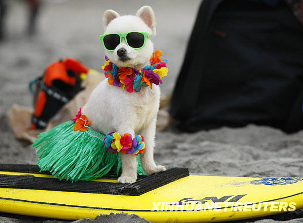 9月13日,在美國加利福尼亞州的德爾馬,一只6歲大的小狗體驗沖浪。當天,這里舉辦了一場狗狗沖浪大賽,旨在為流浪動物籌集善款并喚起人們對寵物的愛心和責任感。 |