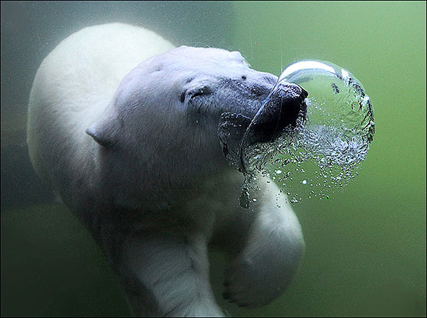 供職于電視臺的幾名攝影師,為了拍到一些有趣的動物鏡頭,已經(jīng)在這里耐心等待了好幾個小時。然而,就在他們兩手空空悻悻而歸的幾分鐘后,這位名叫彼得·施密特的退休醫(yī)生卻拍到了一頭北極熊在水下興高采烈玩耍的瞬間。