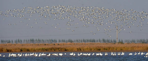 近年來,黃河三角洲自然保護(hù)區(qū)所在的山東省東營市對黃河口濕地生態(tài)采取了一系列保護(hù)和治理措施,不斷開展鳥類科研與監(jiān)測工作,加之國家對黃河實施科學(xué)調(diào)水,黃河三角洲濕地生態(tài)環(huán)境得到明顯改善,保護(hù)區(qū)的鳥類日益豐富。據(jù)統(tǒng)計,黃河三角洲自然保護(hù)區(qū)濕地的鳥類種類已從187種增加到296種,每年來這里的候鳥約達(dá)600萬只。新華社記者
