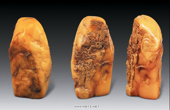 說明:田黃石為壽山石中的極品,價(jià)格昂貴,皆以錢﹑兩為計(jì)算單位。自清以來,極負(fù)盛名,爭相尋求視為瑰寶。所謂