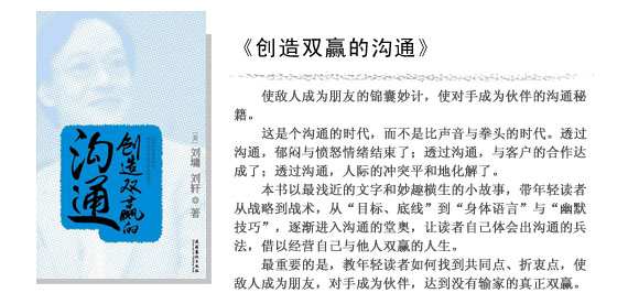 面子給你,里子給我 肯定總在否定前 否定總在私下講 犧牲自己的面子,搶盡對(duì)方的里子 溝通兵法第五條 我操控,你決定 都是你內(nèi)行,全在您手上 大事我作主,小事你作主 人人有份,人人當(dāng)家 溝通兵法第六條