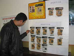 消費者對假冒和正品“酒鬼花生”進行仔細比對。 | “傍名牌”產(chǎn)品橫行市場