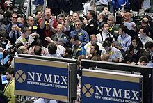 2008年1月2日,在紐約商品交易所交易大廳內(nèi),報(bào)價(jià)聲、尖叫聲不絕于耳。新華社記者在現(xiàn)場(chǎng)看到,隨著油價(jià)的暴漲,交易大廳內(nèi)顯得比平時(shí)更加擁擠。當(dāng)天中午12點(diǎn)10分左右,紐約油價(jià)瞬間沖至每桶100美元大關(guān),創(chuàng)下了歷史新紀(jì)錄。 由于近來(lái)非洲主要產(chǎn)油國(guó)尼日利亞國(guó)內(nèi)局勢(shì)持續(xù)動(dòng)蕩和市場(chǎng)傳聞美國(guó)原油庫(kù)存可能進(jìn)一步下滑,國(guó)際油價(jià)在新年第一個(gè)交易日里便大幅飆升。[詳情] | |