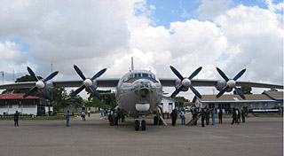 | 2003年11月3日,坦桑尼亞首都達(dá)累斯薩拉姆國(guó)際機(jī)場(chǎng)的跑道上,中國(guó)航空技術(shù)進(jìn)出口總公司將兩架“運(yùn)8F200”型運(yùn)輸機(jī)移交給坦桑尼亞空軍。 |