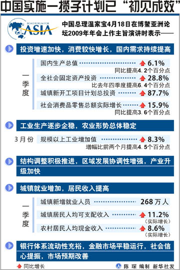 2009年第一季度的宏觀經(jīng)濟(jì)處于全球金融危機(jī)深化和積極財(cái)政政策與適度穩(wěn)健貨幣政策的共同影響之下,總體形勢處于震蕩期。從各項(xiàng)指標(biāo)看,雖然擴(kuò)大內(nèi)需、促進(jìn)經(jīng)濟(jì)平穩(wěn)較快發(fā)展的一攬子計(jì)劃已經(jīng)初見成效,經(jīng)濟(jì)運(yùn)行表現(xiàn)出許多積極特點(diǎn),但仍處于下行區(qū)間。這一階段經(jīng)濟(jì)發(fā)展的特點(diǎn)包括:(1)經(jīng)濟(jì)增長速度趨緩,但總體形勢好于預(yù)期;(2)外部需求持續(xù)萎縮,中國外貿(mào)、外資形勢嚴(yán)峻;(3)固定資產(chǎn)投資增長加快,投資結(jié)構(gòu)有所改善;(4)消費(fèi)保持較快增長,國內(nèi)需求穩(wěn)步提高;(5)銀行體系流動性充裕,貨幣信貸快速增加;(6)工業(yè)生產(chǎn)逐步企穩(wěn),農(nóng)業(yè)生產(chǎn)形勢總體穩(wěn)定,金融企業(yè)經(jīng)營狀況良好。