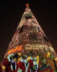12月20日晚上,可口可樂公司在北京歡樂谷公園舉行巨型圣誕樹亮燈儀式。據(jù)介紹,這個巨型可口可樂圣誕樹高達(dá)25米,底座直徑達(dá)15米。新華社發(fā) (宋為偉 攝)