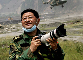 不到10公里的山路,我竟跌跌撞撞走了3個(gè)多小時(shí)。在當(dāng)?shù)貎晌恢驹刚邘椭拢医K于到達(dá)了映秀鎮(zhèn)。如果沒有他們幫我背器材,我還不知道要走多久。 疲憊不堪的我一踏上映秀鎮(zhèn),看到的只是群山中的一片廢墟,漩口中學(xué)倒塌的樓房最為明顯。在廢墟前面的空地上,躺著數(shù)不清的等待救援的傷員,還有救援部隊(duì)官兵奔波的身影,緊張的氣氛就像一部戰(zhàn)爭影片的場景。 不拋棄,不放棄!這是中國一場前所未有的生死大營救,前來救援的直升機(jī)轟鳴聲在山谷里回蕩,每當(dāng)直升機(jī)一落地,官兵們就冒著彌漫的塵土,抬起擔(dān)架向直升機(jī)沖去,快速搶運(yùn)受傷群眾。在空地上等待救援的大批傷員,仰望天空,翹首企盼。 為了更多地挽救地震中受傷災(zāi)民的生命,成都軍區(qū)每天派往映秀的直升機(jī)多達(dá)幾十個(gè)架次,使大批的傷員得到及時(shí)治療。直升機(jī)還為徒步進(jìn)入的先期部隊(duì)送來了食品和淡水。 在映秀鎮(zhèn)的廢墟旁,我見到了濟(jì)南軍區(qū)“鐵軍”127師師長楊劍,得知濟(jì)南軍區(qū)已有4萬多名將士開赴災(zāi)區(qū),他親自率領(lǐng)著800名“鐵軍先遣隊(duì)”連夜徒步從都江堰出發(fā),急行軍來到受災(zāi)嚴(yán)重的映秀鎮(zhèn),50多公里山路他們走了9個(gè)小時(shí)。 在映秀鎮(zhèn),遭受損失最嚴(yán)重的要屬兩所學(xué)校,一所是映秀中心小學(xué),另一所是漩口中學(xué),因?yàn)榈卣饡r(shí)學(xué)生們都在教室里上課,絕大多數(shù)學(xué)生沒來得及跑出來。 我穿過小山一樣的瓦礫,來到位于鎮(zhèn)子里面的映秀中心小學(xué)。這里靜得出奇,校舍全部倒塌,只有飄著五星紅旗的旗桿沒有倒,孤獨(dú)地立在廢墟中,空曠的操場上擺滿了遇難學(xué)生的遺體。一位老鄉(xiāng)告訴我,當(dāng)時(shí)有300多名孩子在這里上課,全被壓在了下面。 武警成都支隊(duì)政委李丕金,是一個(gè)令我敬佩的人。他的家鄉(xiāng)北川受災(zāi)嚴(yán)重,失去了4名親人,還有6人沒有音訊,可是他強(qiáng)忍悲痛依然帶領(lǐng)部隊(duì)官兵奮戰(zhàn)在抗震救災(zāi)第一線,從12日到16日的4天三夜,他指揮部隊(duì)搶救出600多名受災(zāi)群眾。他身先士卒,凡是艱難險(xiǎn)重的任務(wù)他都沖鋒在前。為防止災(zāi)區(qū)疫情發(fā)生,16日,部隊(duì)接到搬運(yùn)和掩埋遇難者遺體的任務(wù),李政委擔(dān)心年十八九歲的年輕戰(zhàn)士有心理障礙,他就主動(dòng)去抬第一具尸體,并進(jìn)行耐心講解,打消了官兵們心中的顧慮?粗前炯t的雙眼,同樣作為軍人的我,心中默默地向他敬了個(gè)莊嚴(yán)的軍禮! 在震中映秀采訪的兩天兩夜,令我終生難忘:沒吃、沒喝、沒地方住,沒洗過臉,沒刷過牙,沒換過衣襪,也沒刮過胡子,甚至沒有大便,因?yàn)閮商於紱]吃什么東西。臉上和頭發(fā)里全是土,臉被太陽曬得黝黑,就像回到了原始社會(huì)。隨身攜帶的一件雨衣,成了我過夜的惟一裝具。每天晚上半夜發(fā)完稿,雨衣就地一鋪,席地而睡,山里夜間氣溫變化大,總會(huì)在后半夜凍醒。 在這里,強(qiáng)烈的余震每天都有很多次,開始還有些在意,后來就習(xí)慣了。記得第一天凌晨2點(diǎn)30左右,一次6.1級(jí)的強(qiáng)余震發(fā)生,將躺在地上的我震醒,不遠(yuǎn)處的山體滑落的巨石砸落在岷江里,發(fā)出“轟隆隆”的轟鳴聲,在寂靜的夜里,顯得如此驚心。